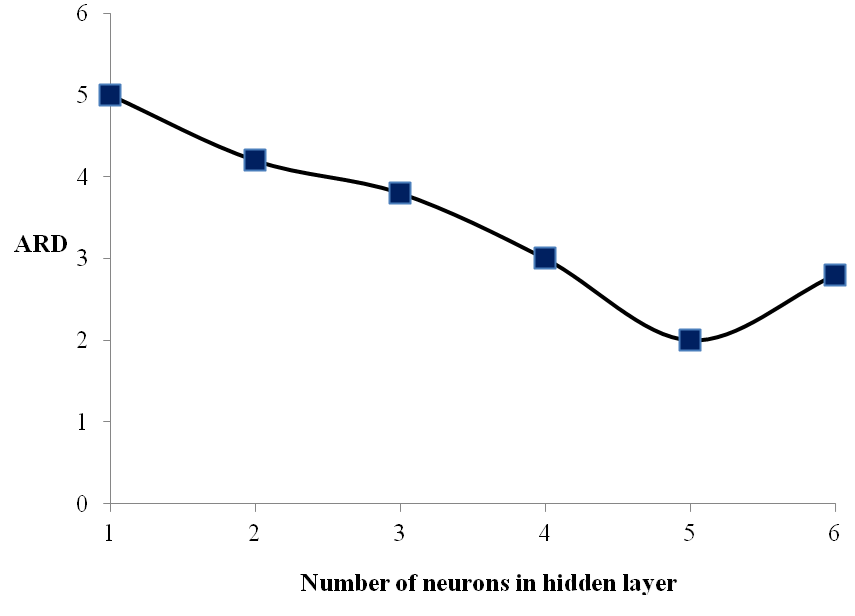 In order to minimize the difference between experimental data and the data calculated by neural network, the afore-mentioned process repeats for the total number of training data. After training, validation of neural network can be done by testing the data.