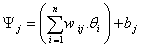 where is the sum of weighted inputs to each neuron and is the output of each neuron which is calculated through Eq. 10.