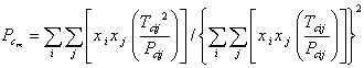 where T is the absolute temperature (K), P is pressure (bar) and subscripts c, r and b denote the critical, reduced and boiling values respectively.