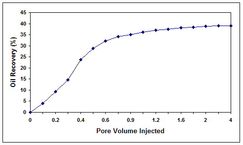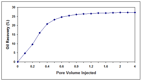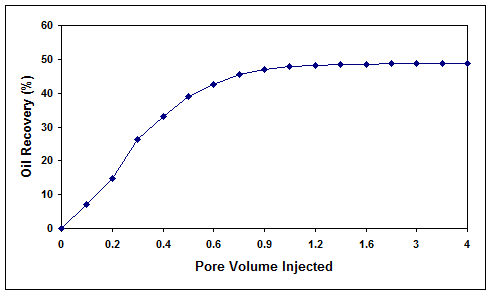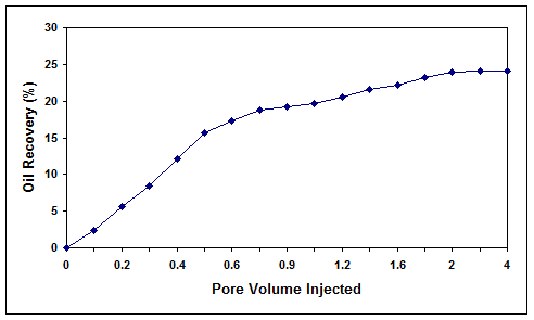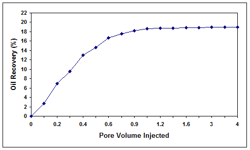 Figure 8. Microbial oil recovery efficiency for core 1 with high residual oil saturation.