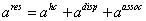 of the system. The superscripts hc, disp, and assoc refer to a reference hard-chain contribution, a dispersion contribution, and an associating contribution, respectively.