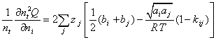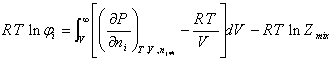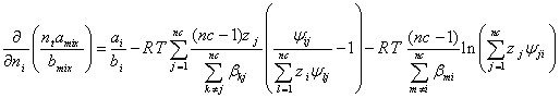 The fugacity coefficient of component “ i “ in the mixture can be obtained by the following relation: