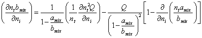 Based on the LCEOS1 mixing rule, the derivatives in equation (A.3) are as follows,