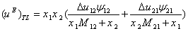 can be expressed by using local composition concept [8] and two-liquid theory [15] as,