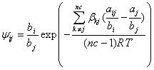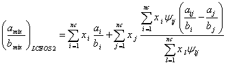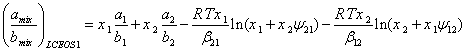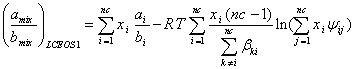 This quadratic mixing rule is widely used to predict the nonideal behavior of mixtures at moderate pressures. However, for strongly nonideal systems containing polar and associated components, more precise mixing rules are needed so that the two LCEOS1 and LCEOS2 mixing rules are developed as follows.